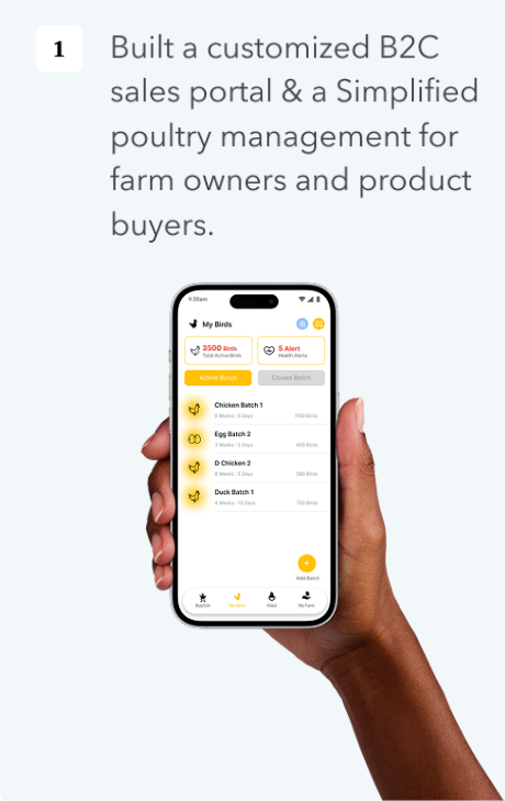 Farm owners face difficulties in managing their poultry products while keeping up with sales. Buyers struggle to find reliable poultry products nearby. Our challenge was to combine these two user needs into a single easy-to-use platform.